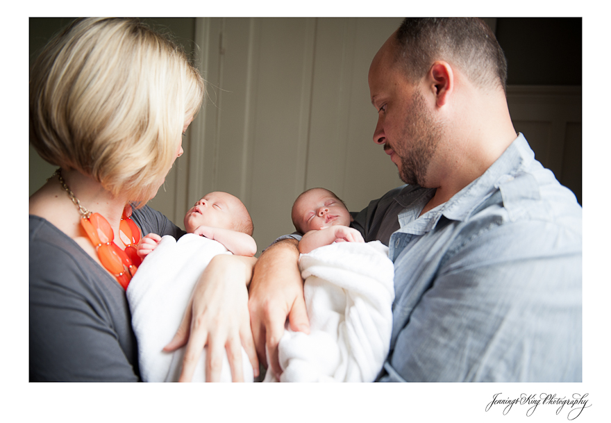 I don’t even know how to begin this blog post…how can I share how excited I am for Todd and Hayes to have beautiful twin girls!? The Jessups have been such great friends of mine for only 3 years, but it feels like I have known them for a lifetime. Hayes and I have been talking about this shoot way before the little girls were born, and this day finally came! After a couple of weeks in the hospital Callan and McRae were welcomed home on Labor Day! When I walked into the nursery to meet the girls for the first time, I lost it, crying tears of joy and happiness for their cute little family. My being 7 months pregnant as well, doesn’t help the emotional aspect, especially since I can’t imagine that I too will have a little one in 3 months! Hayes is such a beautiful woman as it is, but truly shines as a loving mother. Her husband Todd, aka “Toddy J,” can have me rolling in laughter in 0.4 seconds! He might be one of the funniest guys I know. He loves his girls so much and it is always a pleasure seeing the men care for their first newborn children. It just makes me well up with such pride! Last but not least, is Boomer (dog), aka “Boom Nasty.” He too is part of the cute family and is very proud of his little sisters. I also have to add how wonderful the girls behaved, there was not one peep during our 2 hour session!!!