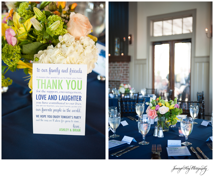 Ashley and Brian, might be the most passionate couple I have photographed! I loved the emotion they showed and all the kisses that were exchanged between the two all day long! Ashley and Brian live in DC but will soon move to Charleston! What lucky people they are! Ashley’s mother, during her toast, said that Ashley is the kind of girl who “lights up the room when she enters.” I couldn’t agree with her more. Brian is a kind hearted guy who adores his new wife Ashley. Their wedding was filled with navy accents and I loved the runners on the tables. Katie, of, Burlap Elephant, planned every little detail for a smooth, fabulous event. A favorite detail of mine, was the flask that Brian and his friends started to engrave when they get married and lose their bachelorhood. The Creek Club at I’on is one of most beautiful places for a wedding: on the water with the stunning sunset. Ashley and Brian had mentioned to me that they just wanted their reception to be a big fun party, and that it was!!! Lots of great dancing and happy times! Nautical touches and navy blue colors were clues that after the big dance party our couple would be whisked away on a boat!