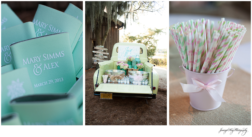 One of the most touching details that was shared with me was from her mother Julia. Mary Simms was adopted by her parents when she was two days old. She was delivered in a pickup truck on Sunday morning, March 19th. The “Sweet Pea” truck was the backdrop for the Photo Booth and at the end of the evening provided the ”going away” transportation. Two journeys, one as a baby, now as a couple beginning their life together.