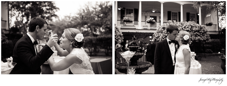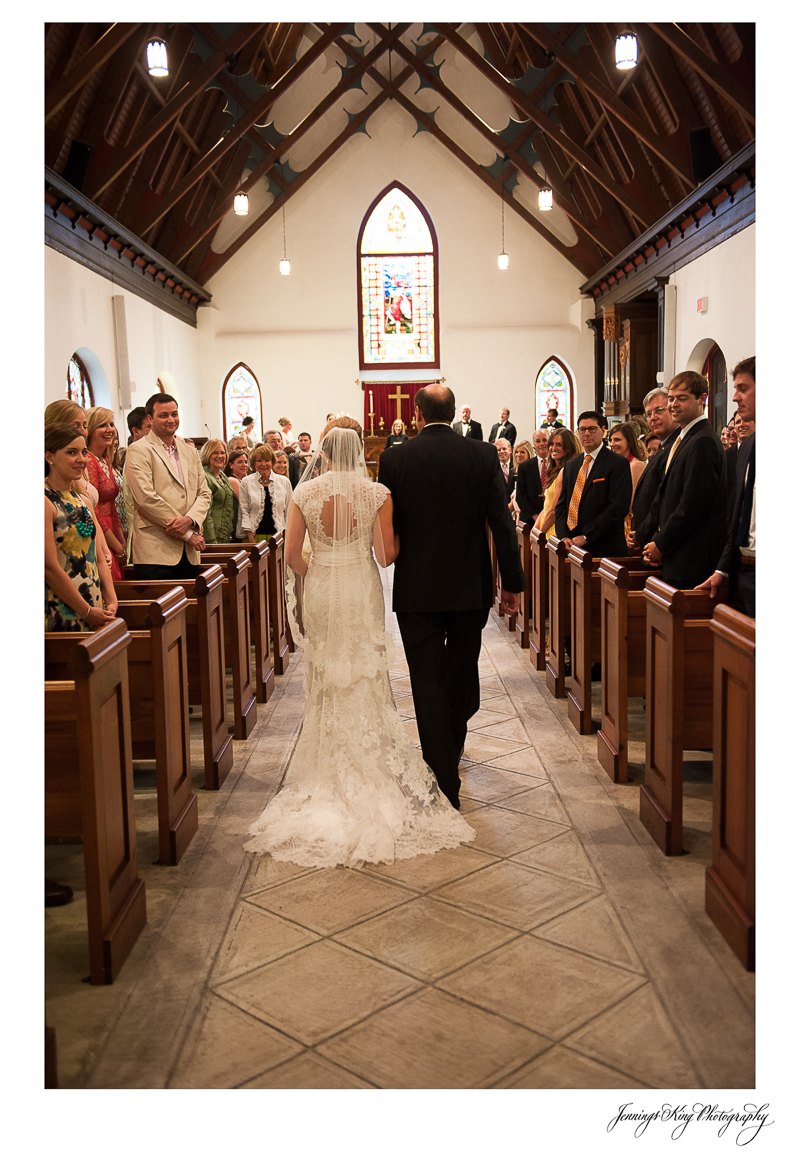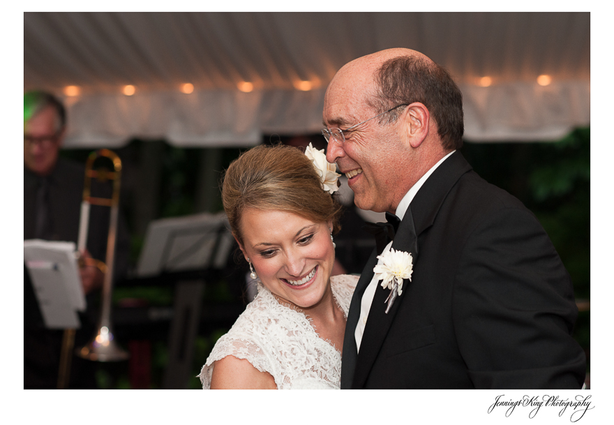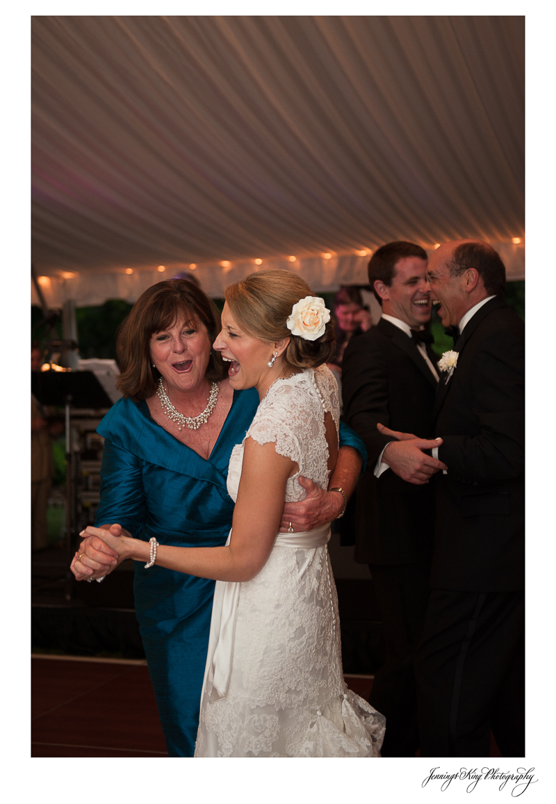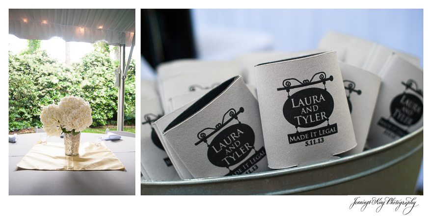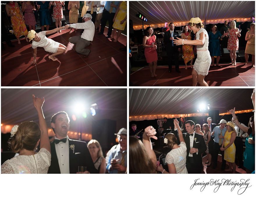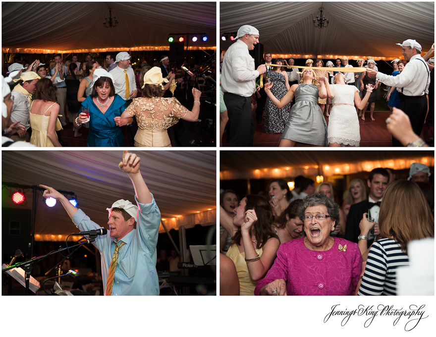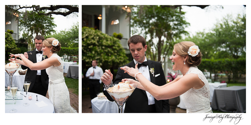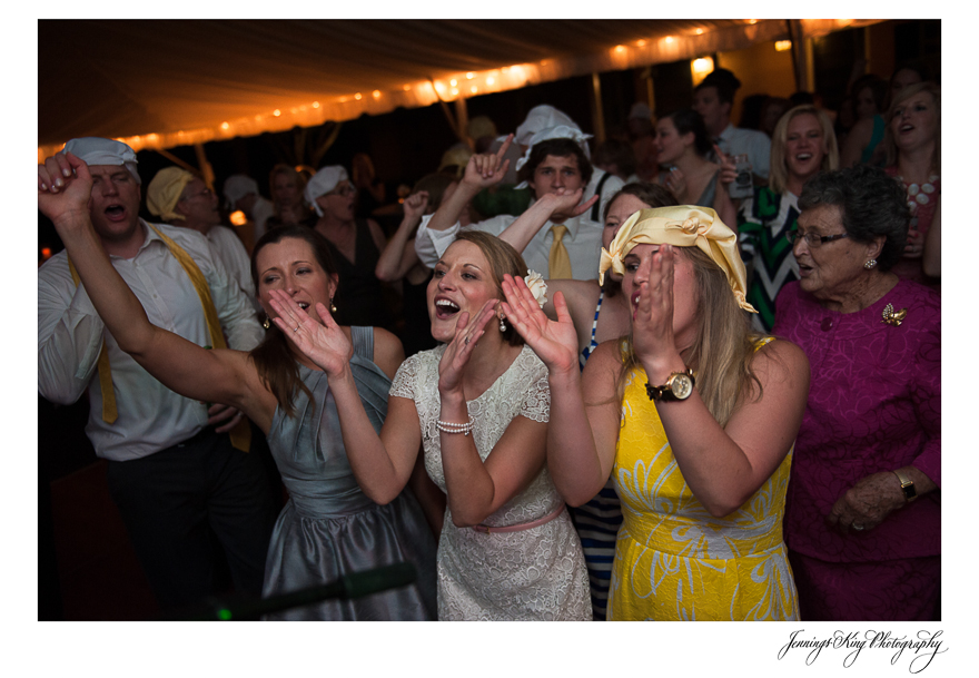 Instead of having a wedding cake, Laura and Tyler opted for banana pudding “cake” served in a large martini glass! Such a cute and fun touch! When you see the images from the reception, you might wonder why people have napkins on their heads…it is a tradition from her father’s side of the family. During parties they all tied napkins on their heads and danced around…I was even inducted into this tradition by the Father of the Bride!