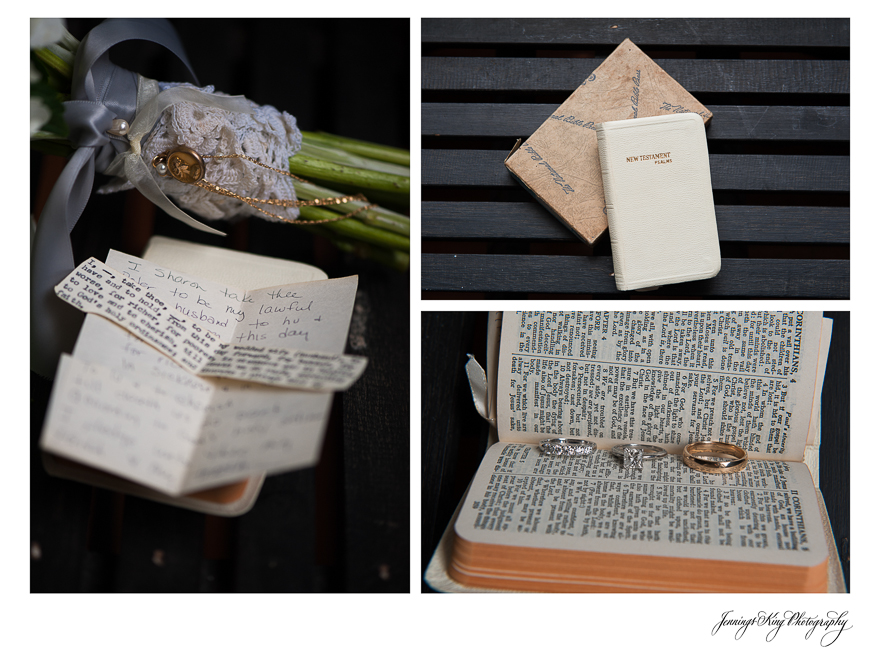 The details, OH the details! Where do I even begin?! Laura and I were like two peas in a pod preparing for her wedding: the lists of details to capture, the shot list of family, the family traditions. Everything was so organized and I was eating it all UP!!! Some details that I must mention in no order: Laura’s grandmother’s ring (something old), her mother’s and sister’s blue garters (something blue), the lace from her mother’s gown encircling Laura’s bouquet, her great-grandmother’s locket, and the lace crocheted by her great-grandmother. Personal and sentimental touches were everywhere. The Bible that Laura carried down the aisle was the same Bible that was used during her parent’s wedding and tucked inside it were the wedding vows they had written to each other!